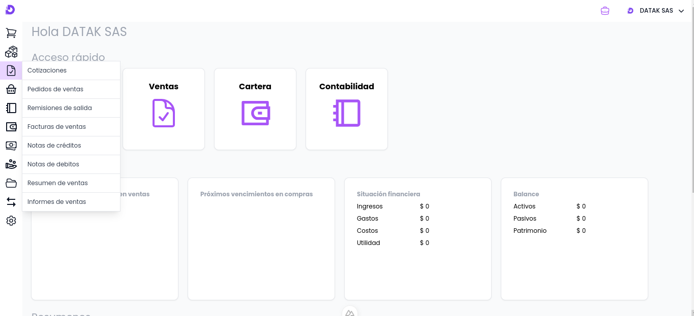Se puede acceder a la opción de Remisiones de salida al ingresar en la unidad de negocio a gestionar, en la barra de menú, sobre el botón Ventas y seleccionando la opciónRemisiones de salida.